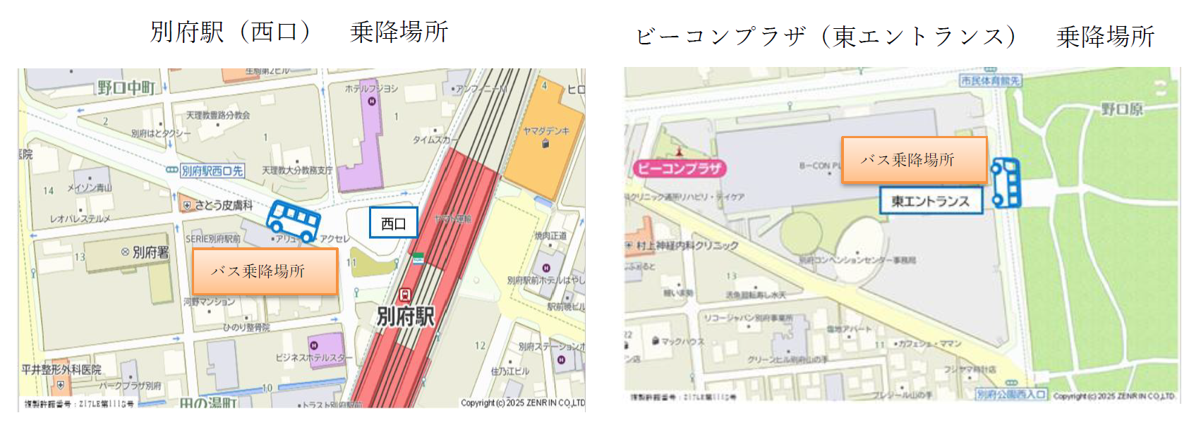 シャトルバス出発地:別府駅西口 ※吉平ビル・大衆美容前